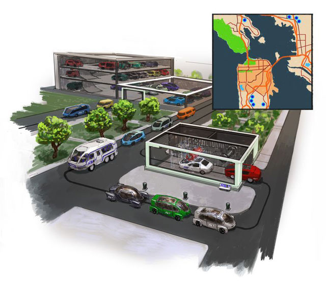 把人卸下来之后,自动汽车就会回到郊外的仓库进行清洗和充电,使得停放在拥堵地区的车辆变少了。