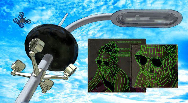 Sauron Pod?:这种8K360°的摄像头是2000年代早期城市率先采用的联网视频系统的进化。但那些跟S-Pod相比只能算是翻盖手机!这种东西能够扫描脸部、衣服、文面以及其他标识,辨识度之高以至于处理图像的算法现在能以50%的精确度正确识别一位行人。它运行的软件甚至能够向官员发出告警,提醒某位坐立不安的人只可疑,然后跟着此人在城市的踪迹。