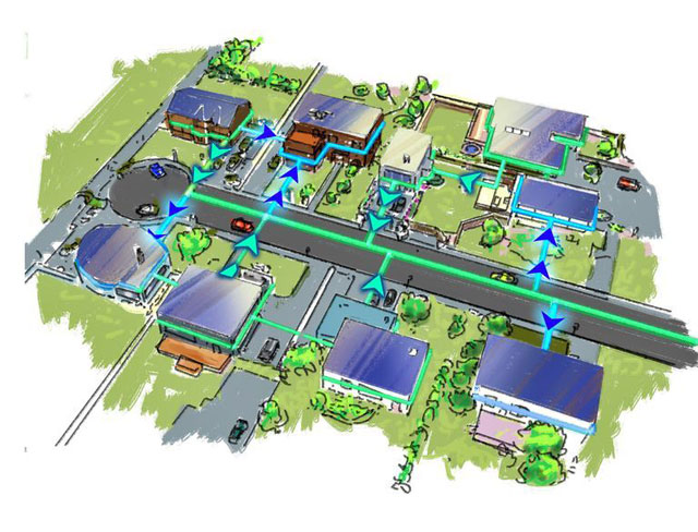 什么是微电网:将你和你家产生的电力与邻居以及邻居家产生的电力(也许还包括本地企业或者其他临近建筑)连接起来的系统。
