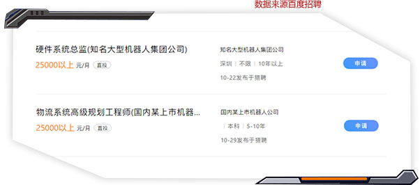 中国机械工业联合会统计数据表明,中国当前机器人应用人才缺口20万,并且以每年20%~30%的速度持续递增。